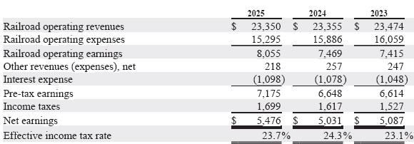 BNSF has been late to adopt logistical efficiencies, all the major Class 1 rails except BNSF adopted PSR (Precision Scheduled Railroading) method of operations. For example, the closest competitor Union Pacific (UNP) has operating ratio ~60%, substantially lower than BNSF ~67%.
