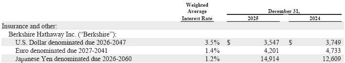 Most of it comprises of JPY denominated debt with only 1.2% fixed interest rate (interest expense $180m). The proceeds funded the 5 Japanese trading companies which gave dividends of $862m in 2025, yielding 5.6% on original cost basis of $15.4b (pg.20, 2025 10K).