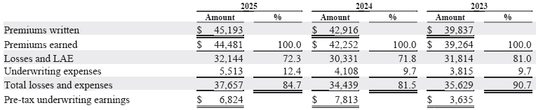 If conditions remain unchanged, we can expect premiums and underwriting profits to decrease in 2026, however profitability will be maintained.