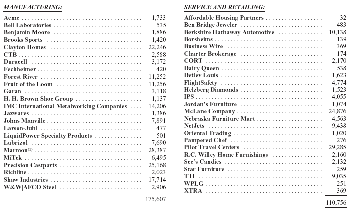 The MSR segment is made up of many companies with even more subsidiaries underneath. Marmon itself is a holding company that has more than 100 manufacturing & service businesses organized into 11 business groups. In total, MSR has 286,363 employees!