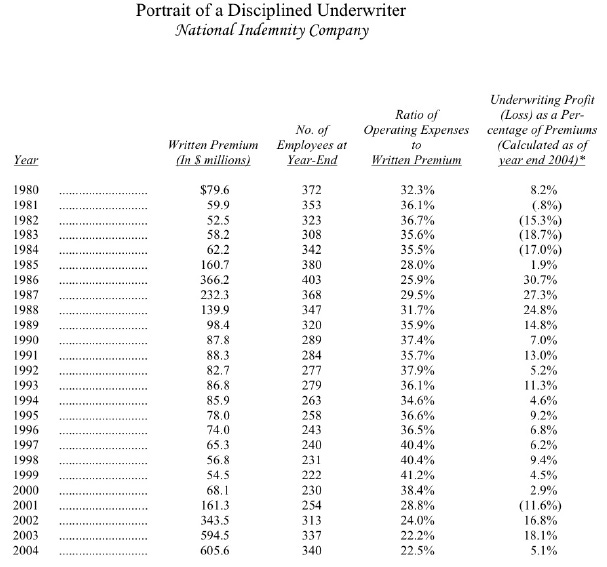 Don Wurster (CEO National Indemnity, 73 years old). This fact alone should show why he is instrumental at National Indemnity: From 1986 to 1999, written premiums fell by -77%, but headcount only decreased by -45%, and National Indemnity had underwriting profits every single year: