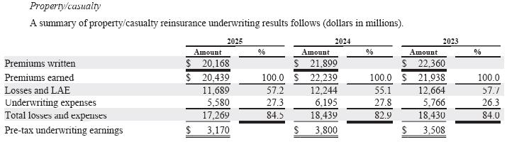 Compare this to the entire RI industry surplus capital of $760b with expected written premiums of ~$438b (+11% growth from $395b in 2024). These stats are incredible: BRK wrote 6% of the entire industry’s premiums, and has 40% of surplus capital!