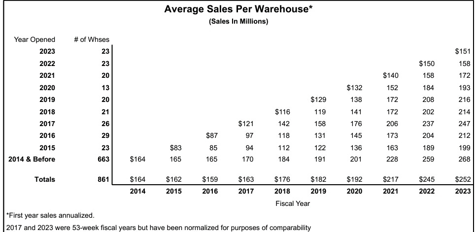 In 2023, same store sales growth was 4.9%. Every cohort of stores in each year recorded growth, even those built before year 2014 had 3.5% growth.