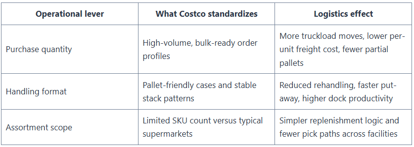 This policy also enhances receiving standards in Costco Logistics. Pallet integrity, consistent labels, and stable stacking are critical because the pallet is the work unit. When loads arrive ready for quick placement, the warehouse avoids slow case-by-case stocking.
