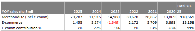 The amazing thing is e-commerce growth actually did not require much incremental investments. Consider 2020 to 2025: