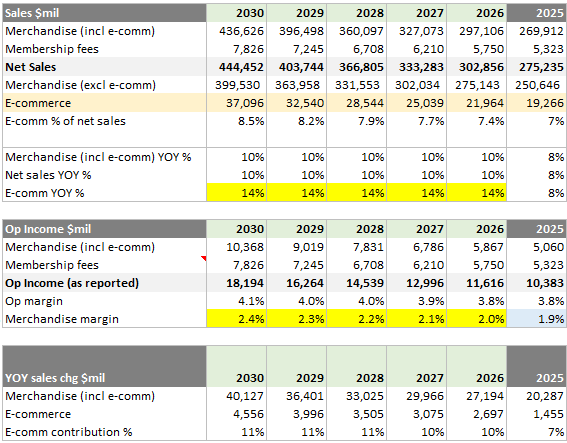 COST doesn’t explicitly report e-commerce revenues or margins, but we can infer the revenues since they mention the proportion: