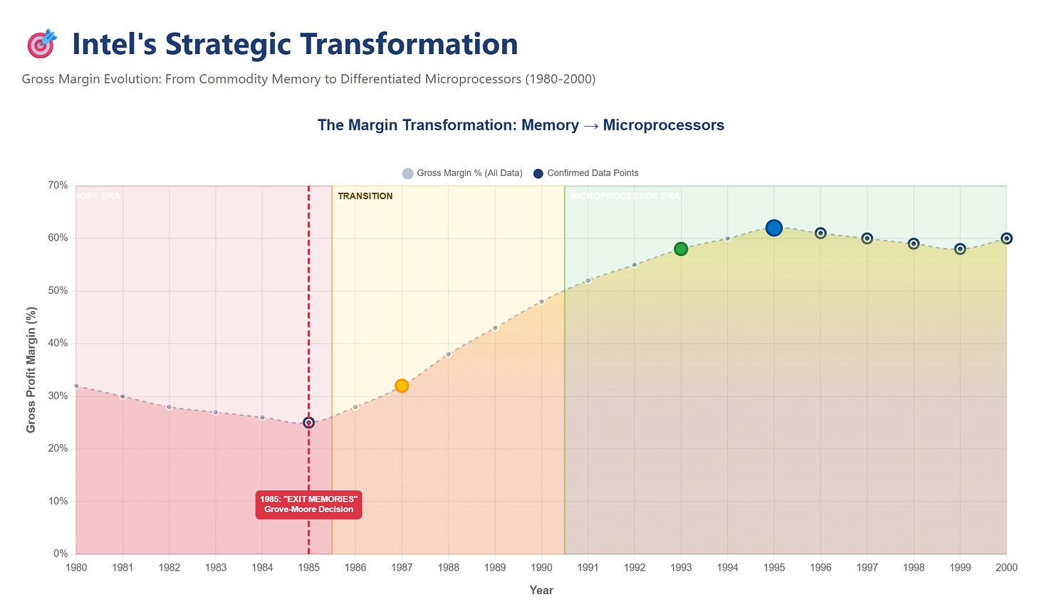 Among the endless debates on how to compete with the Japanese, Moore and Grove decisively exited the memory market.