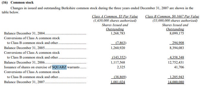 Holders pay Berkshire 3.75% annually for the right to receive 3% coupon and the option to buy shares within the 5 years. In other words, SQUARZ is a -0.75% interest rate note with warrants attached.