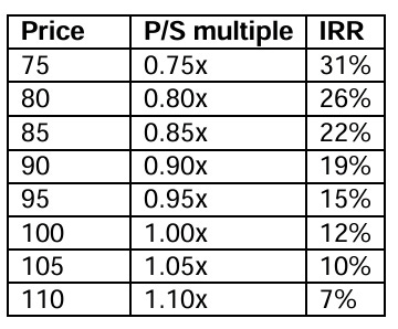 On average, CSU pays around 1x P/S, and the average company is certainly not a shrinking one like our example above. Therefore, it’s safe to assume that CSU is achieving high IRR for its acquisitions.