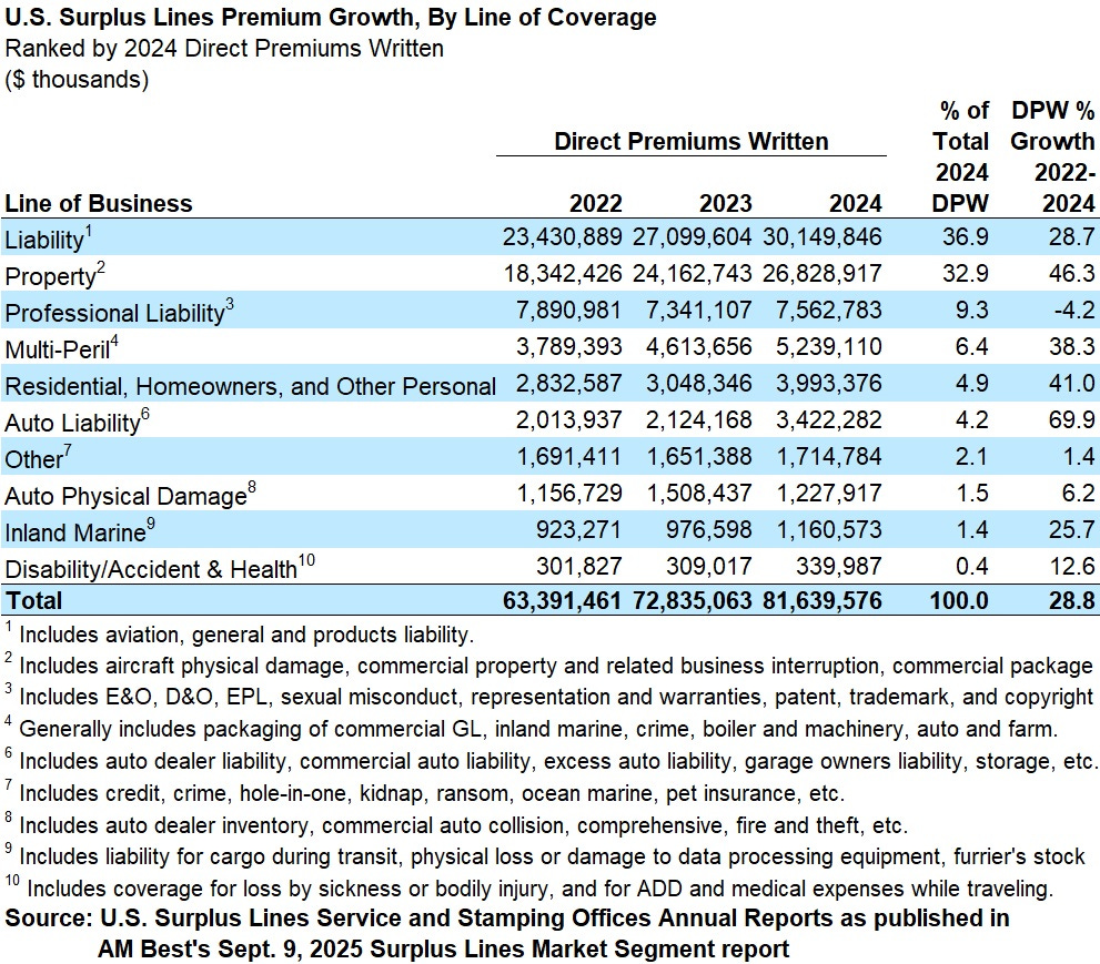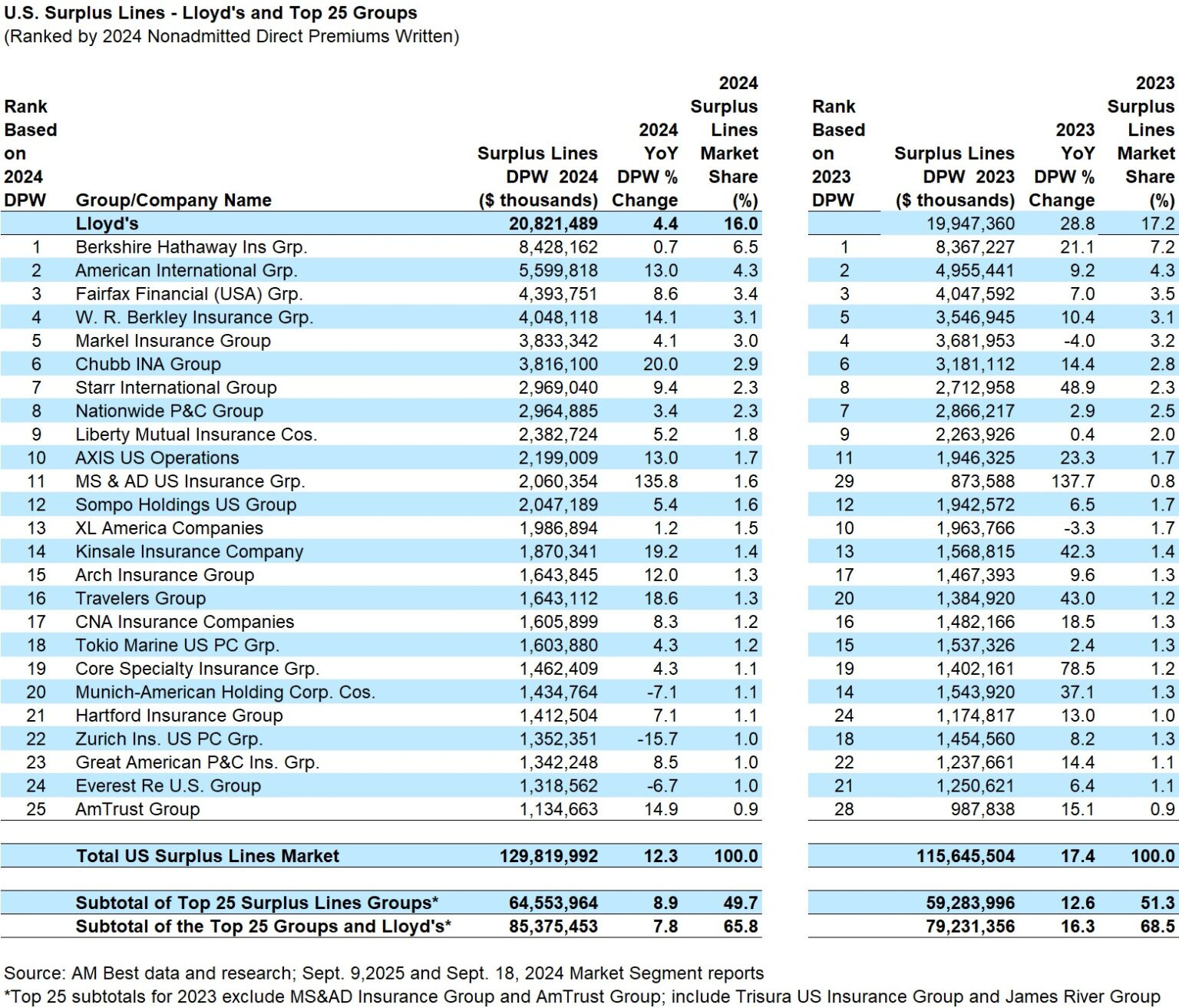 Year 2024 marked the 7th straight year of double-digit growth for the E&S market, the top 25 players write about 2/3 of the total $130b premiums.
