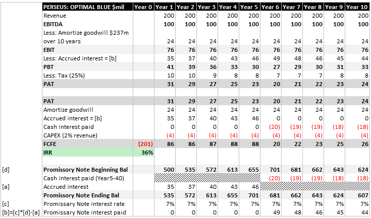 In fact, even if Optimal Blue produces zero net income after Year 5, while continuing to pay interest, the IRR is still 28%.